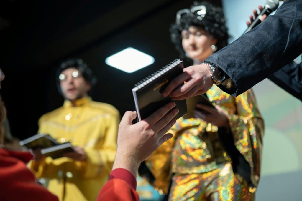 Le jour J, tout d’abord, les protagonistes vous accueilleront sur le lieu de l’événement et vous répartiront en groupes d’enquêteurs. Généralement, les équipes sont formées par tirage au sort afin d’éviter les affinités entre collaborateurs. Ainsi, chaque équipe recevra un nom, un carnet, un stylo et une carte d’enquêteur.