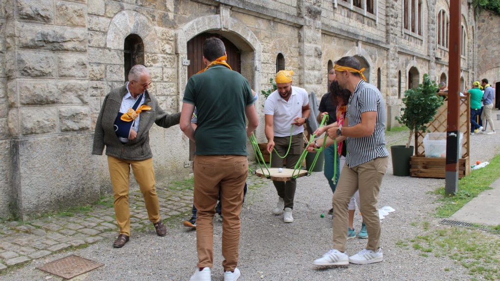 Pour qu’une entreprise soit productive, il est essentiel d’allier performance avec bonne ambiance, cohésion d’équipe et communication efficace. Notre team building Taka est dans pré propose de nombreux ateliers originaux qui misent sur l’entraide, la communication et la compétition. Vous vous surpasserez en équipe tout en apprenant à mieux vous connaître et à renforcer vos liens. Alors faites preuve de solidarité pour accumuler les victoires et tenter d’arriver sur la première place du podium !